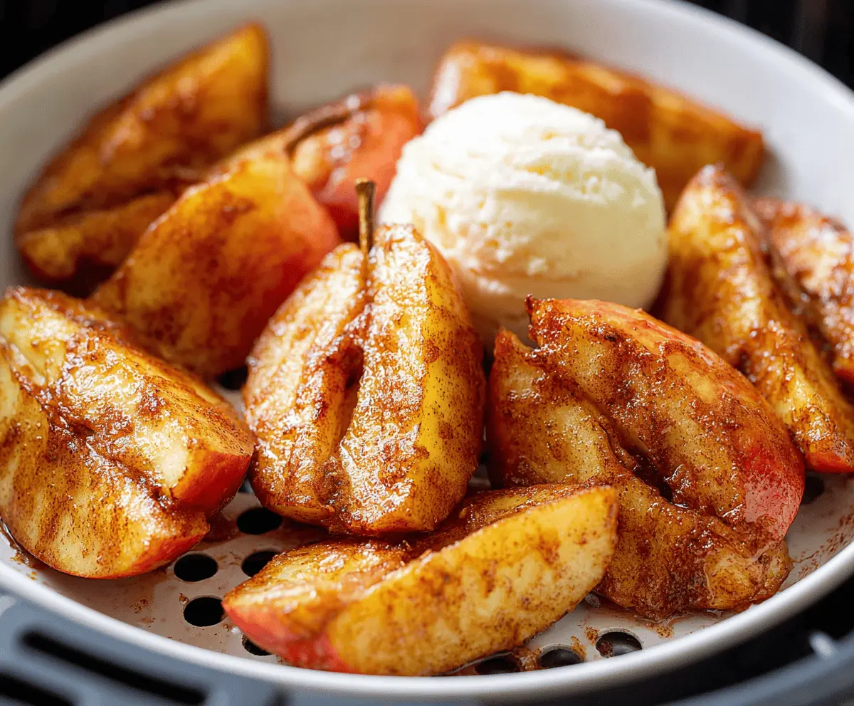 Once done, carefully remove the apples from the air fryer and transfer them to a serving dish. Enjoy them warm, and don’t forget to add a scoop of vanilla ice cream or a dollop of whipped cream on top, if desired!