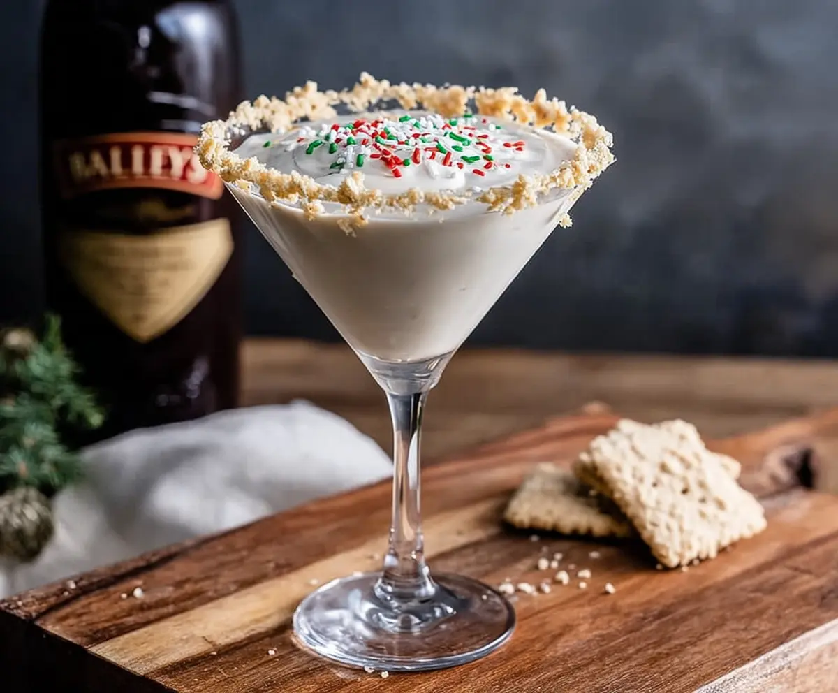 Top your martini with a generous swirl of whipped cream for that indulgent touch. If you’re feeling festive, sprinkle some red and green sprinkles on top for a cheerful appearance!