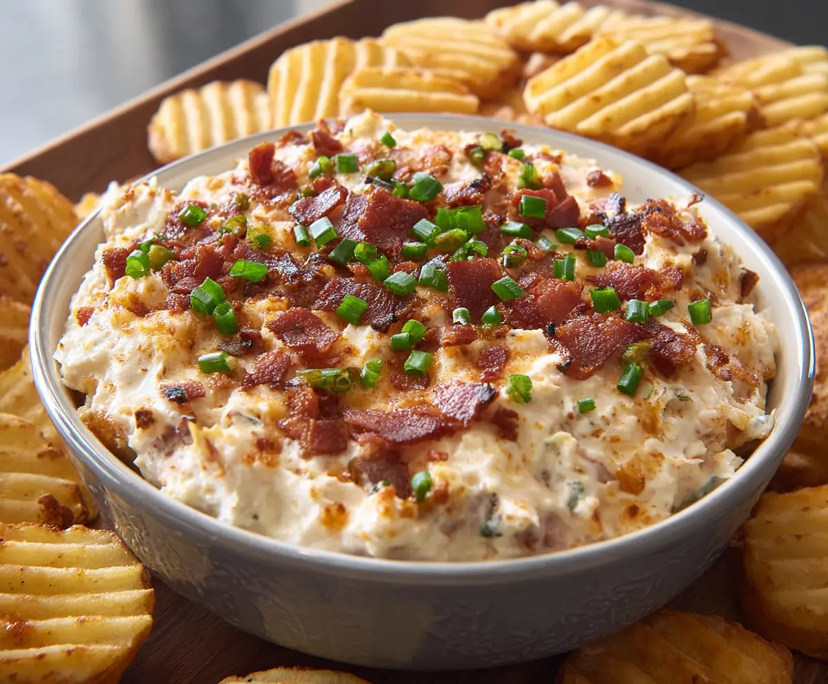 This creamy Baked Potato Dip brings all the flavors of a loaded baked potato right into a bowl! It’s rich, cheesy, and topped with crispy bacon bits—yum!