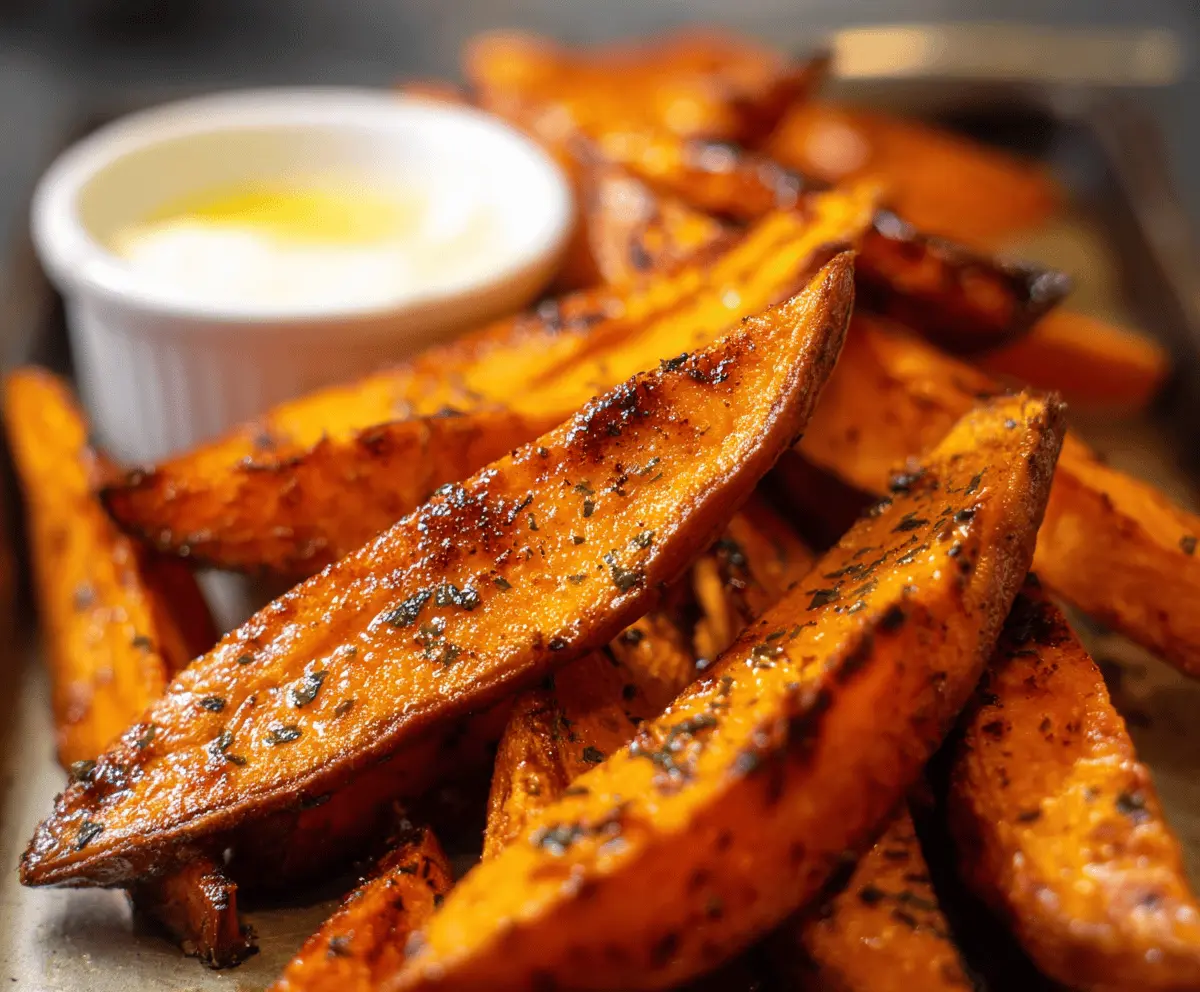 Baked sweet potato wedges are a tasty and healthier version of fries. They are crispy on the outside and soft on the inside, making them super satisfying!