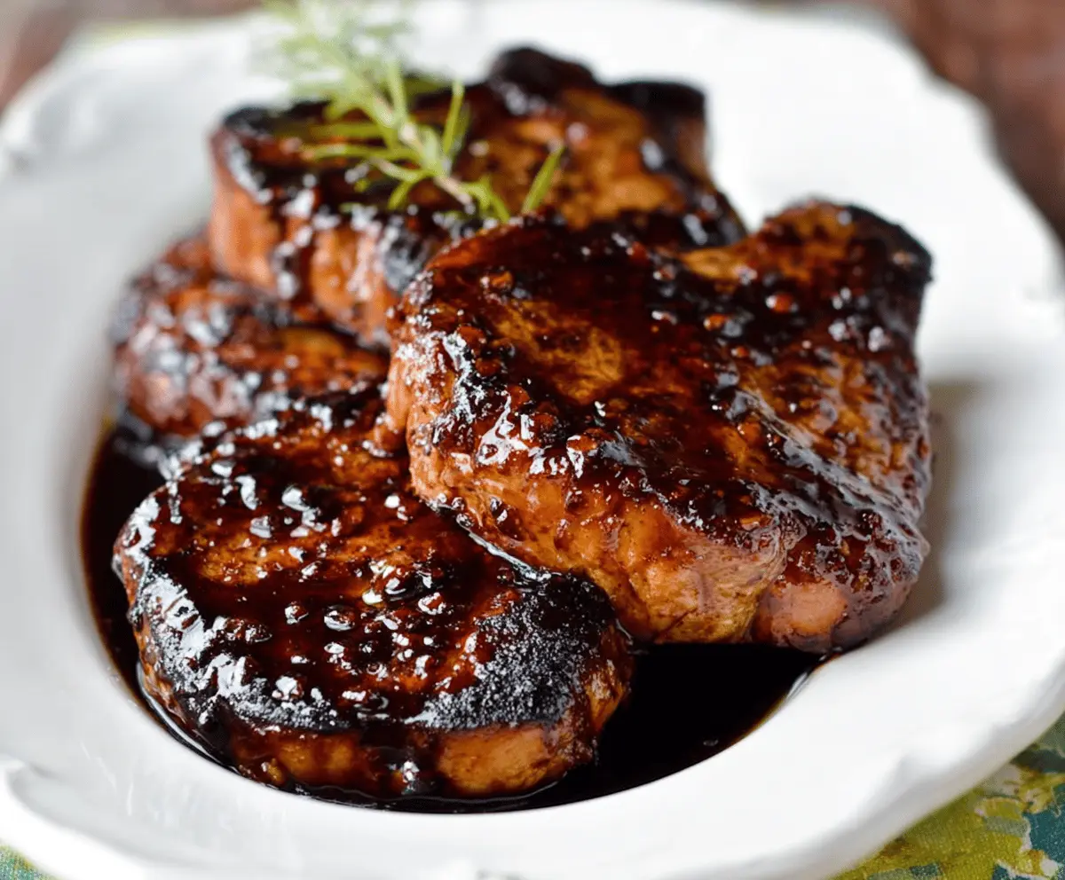 Enjoy your tender, flavorful balsamic glazed pork chops with a shiny, sweet, and tangy sauce!