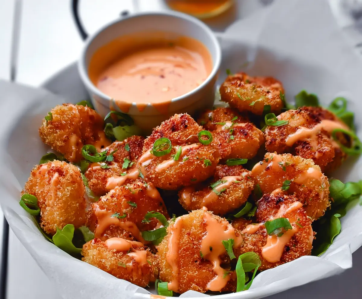 Enjoy your crispy, spicy, creamy Bang Bang Shrimp Bites! Perfect for parties or a delightful snack at home!