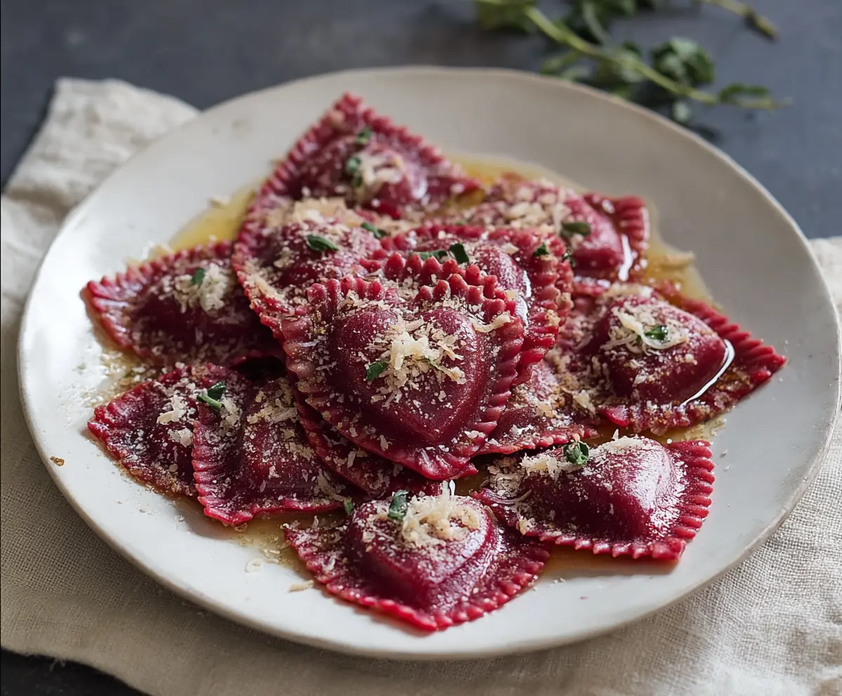 Beet Heart Ravioli is a colorful and fun dish! These cute little pasta pockets are filled with a tasty mix of beets and cheese, making each bite a treat for your eyes and your tummy.