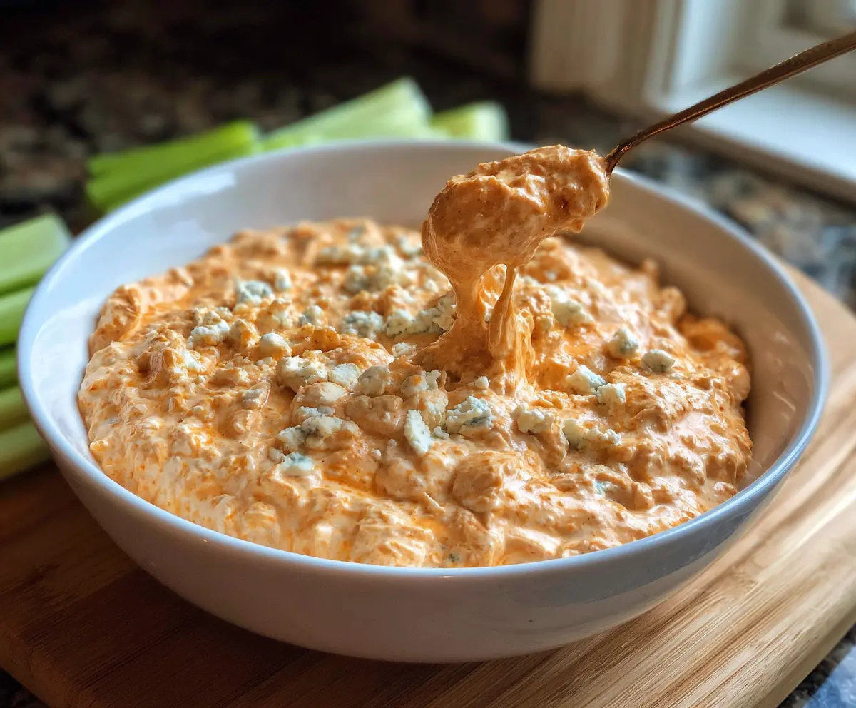 Getting the perfect combination of creaminess and flavor is key in this recipe. First, ensure you mix the cottage cheese and Greek yogurt well until they’re smooth. This avoids lumps and helps them blend nicely with the buffalo chicken.