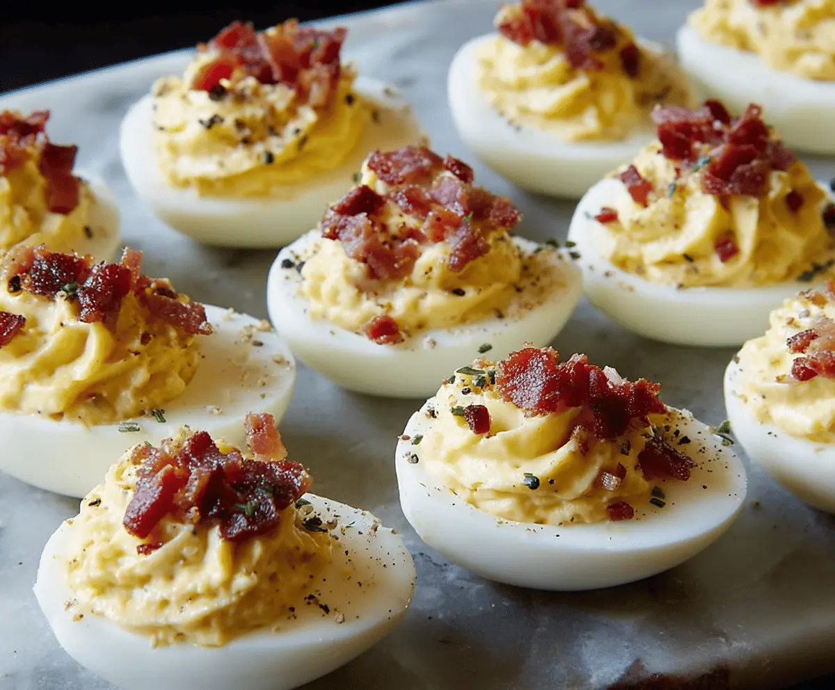 Now you’re ready to serve your Carbonara Deviled Eggs! They’re perfect for parties, snacks, or just because. Enjoy the delightful flavors of bacon, Parmesan, and garlic in each bite! 🍽️