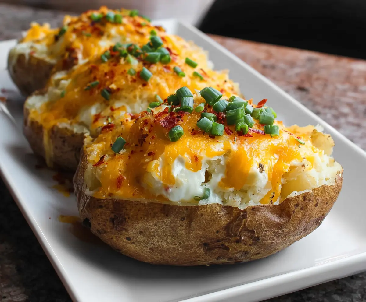 This scrumptious recipe takes about 15 minutes for prep and roughly 1 hour and 15 minutes total, including baking time. You’ll spend about 60 minutes baking the potatoes and an additional 15 minutes for the final cheesy topping. Perfect for a cozy dinner!