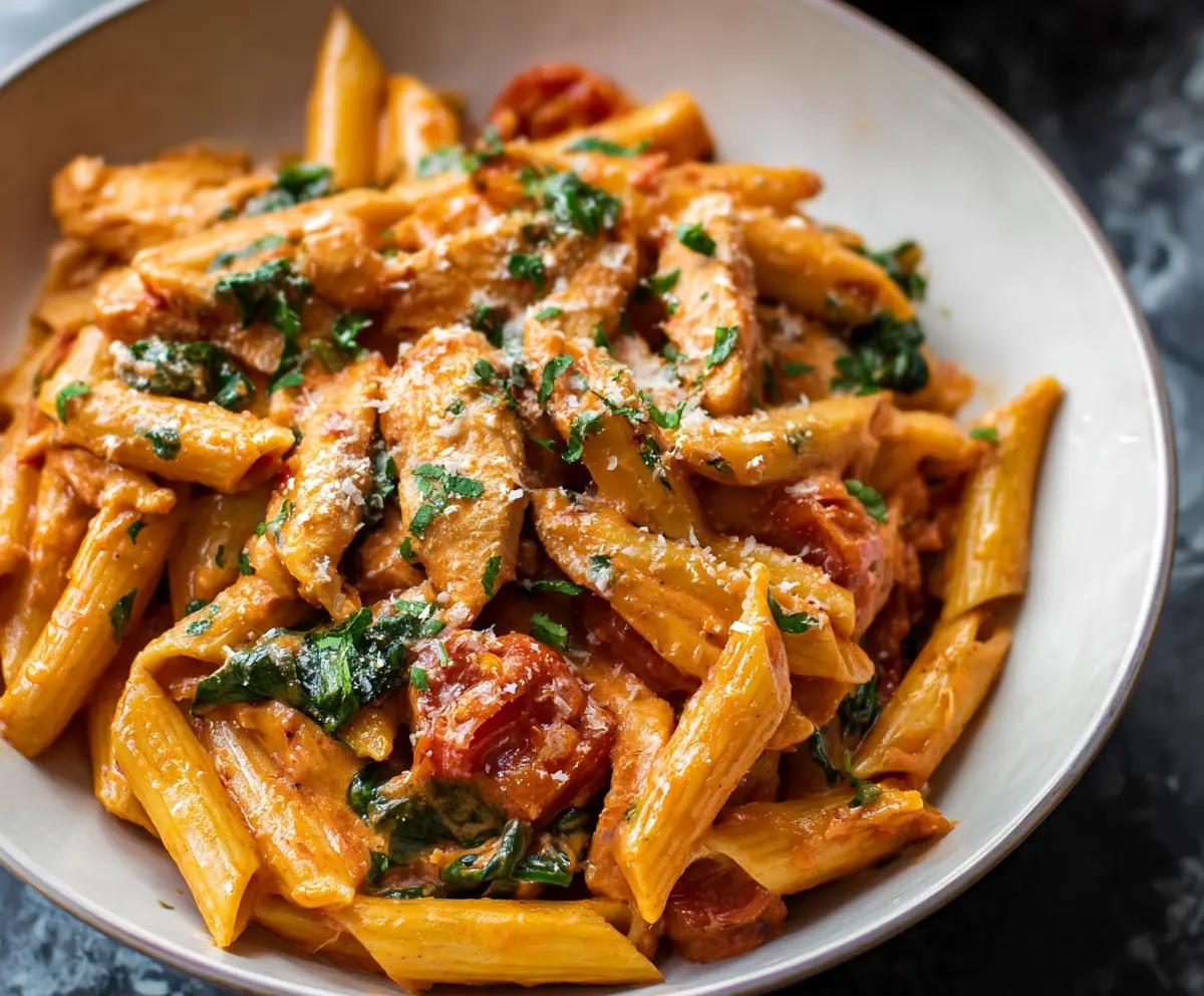 This Chicken Creamy Tomato Pasta is a warm hug in a bowl! It combines juicy chicken and rich, creamy tomato sauce with tender pasta for a comforting meal.