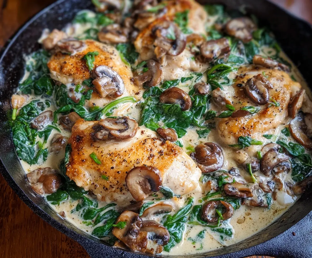 This Chicken Mushroom Spinach Skillet is a one-pan wonder! Juicy chicken, flavorful mushrooms, and fresh spinach come together for a meal that’s quick and good for you.