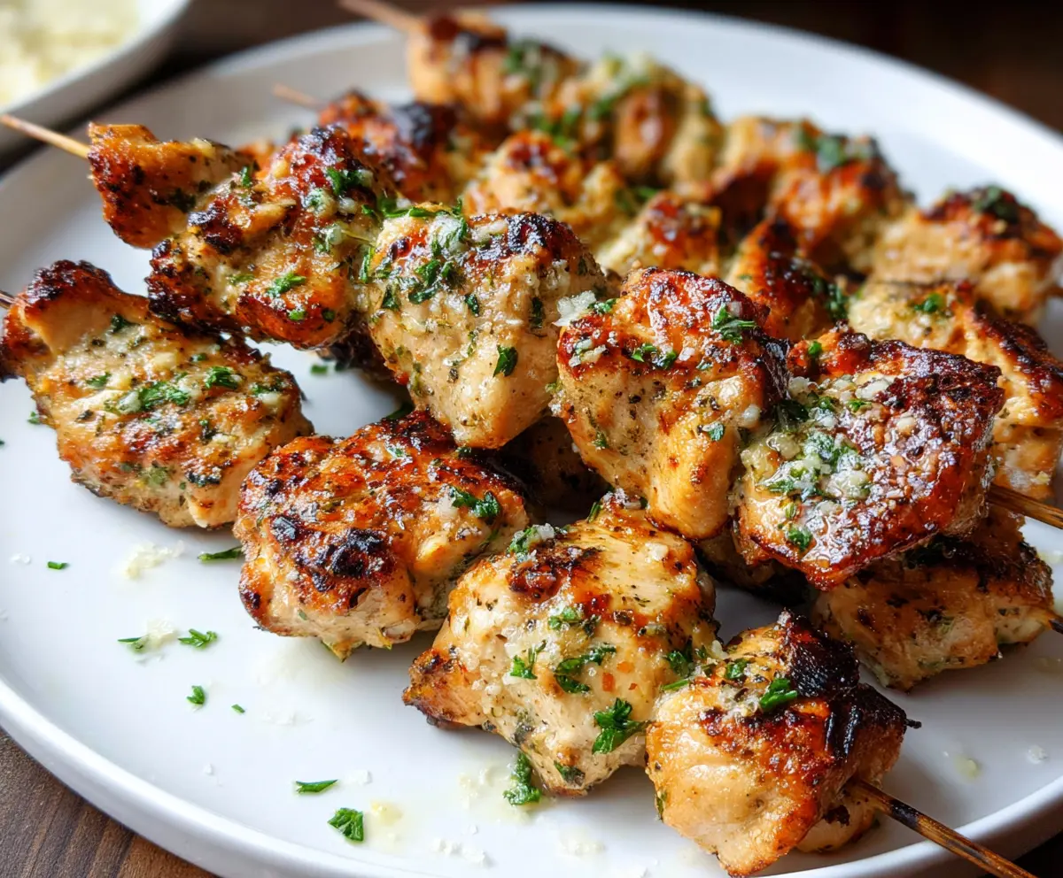 Serve the skewers immediately with your favorite side dishes like grilled vegetables, salad, or rice. Enjoy these flavorful Garlic and Parmesan Chicken Skewers!