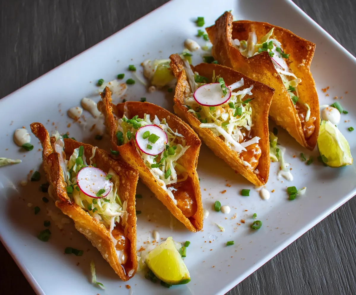 Get ready for a fun twist on dinner with these Chicken Wonton Tacos! Crispy wonton wrappers filled with juicy chicken and tasty toppings make each bite a crunchy delight.