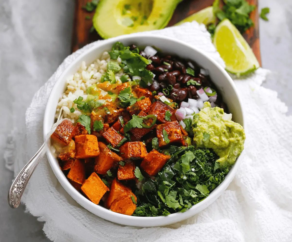 Garnish with fresh cilantro and serve with lime wedges on the side for that zesty squeeze! Dig into your colorful and flavorful Chipotle Sweet Potato Burrito Bowls.