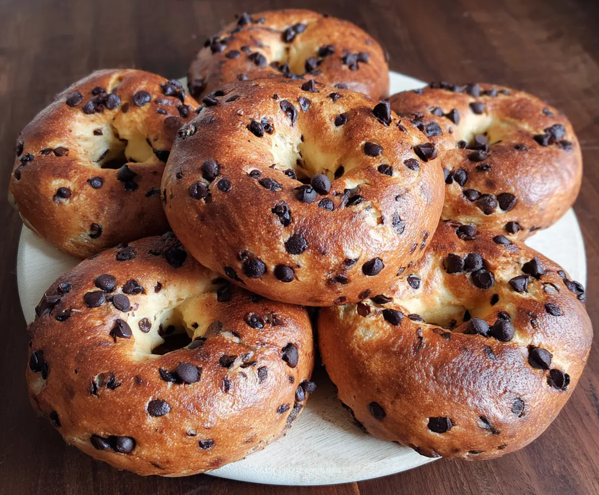 These chocolate chip bagels are a fun twist on a classic! Soft, chewy, and loaded with sweet chocolate chips, they make a perfect snack or breakfast treat.