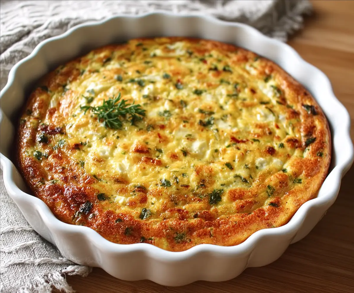 You can serve the quiche warm or at room temperature. For a pretty touch, garnish with a small sprig of fresh dill or parsley. Enjoy this delicious, cheesy, and satisfying dish!