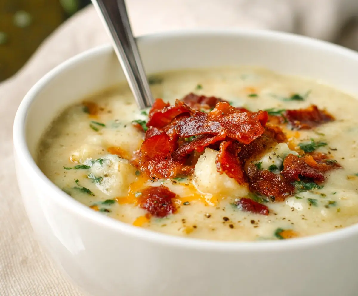 Ladle your creamy soup into bowls and top each one with crispy bacon. Don’t forget to sprinkle on some fresh parsley or chives for that extra touch!
