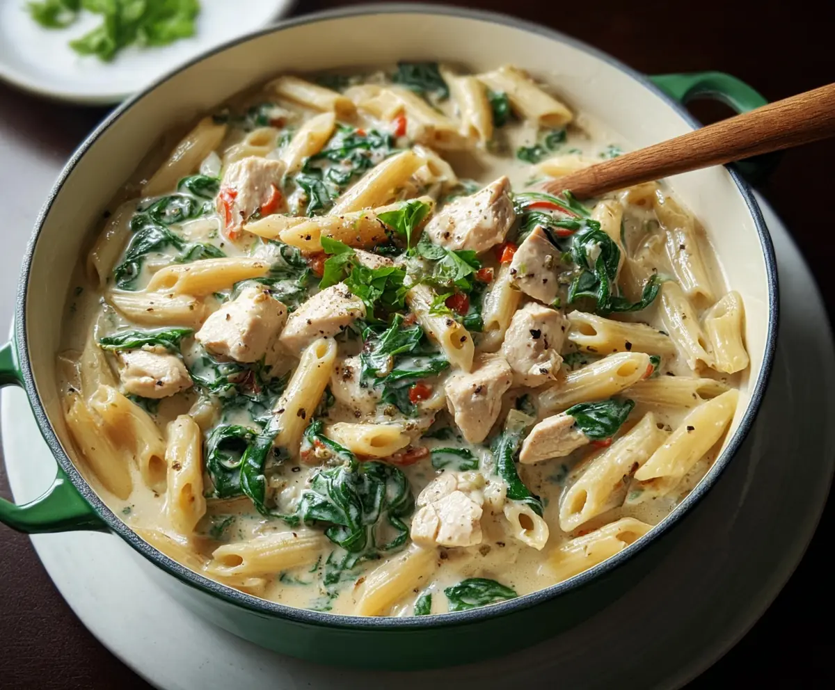 This creamy chicken spinach pasta is a tasty one-pan meal that’s oh-so-easy to whip up! With tender chicken, fresh spinach, and a rich sauce, it’s comfort food in every bite.