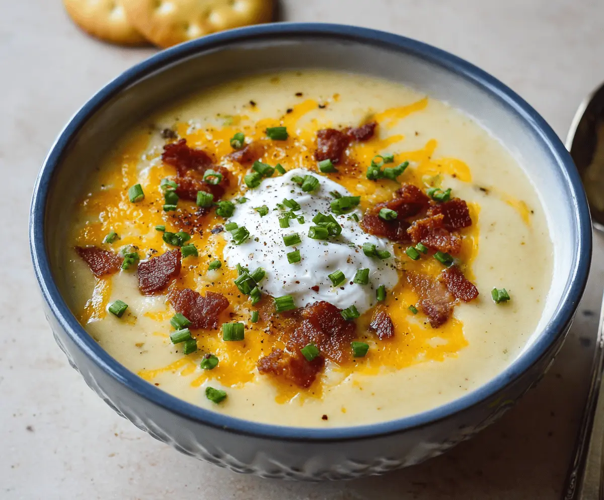 This creamy slow-cooked baked potato soup is hearty and delicious, offering warmth and comfort in every spoonful. Enjoy your tasty creation!
