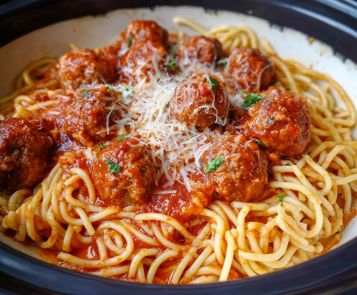 Serve hot and enjoy this comforting bowl of Crockpot Spaghetti and Meatballs. The aroma will have everyone rushing to the table!