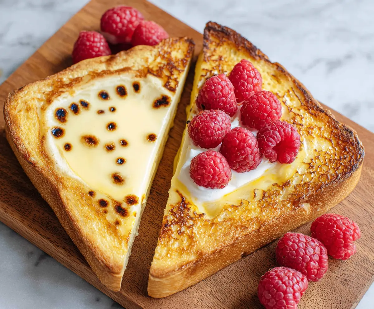 Finally, serve your Custard Yogurt Toast immediately with fresh raspberries or your favorite fruit on the side. This colorful addition makes it even more appealing and tasty!