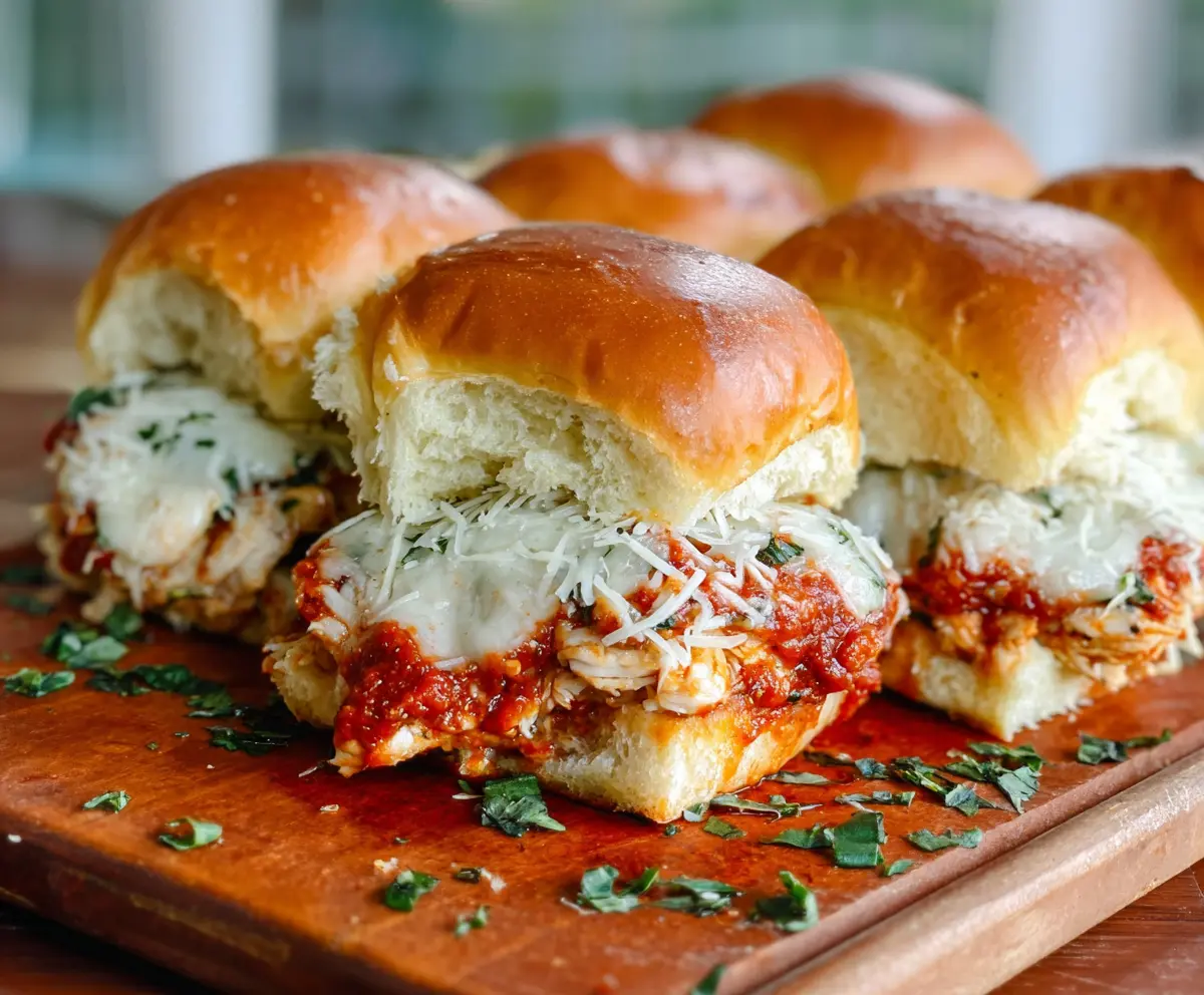 These Garlic Chicken Parmesan Sliders are mini sandwiches filled with juicy chicken, gooey cheese, and a sprinkle of garlic. They’re super tasty and perfect for a party!