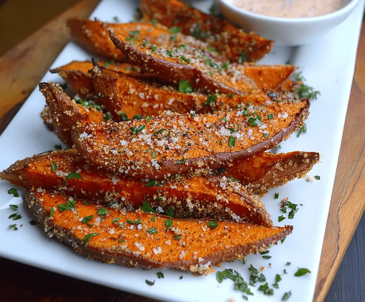 These garlic parmesan sweet potato wedges are crispy, tasty, and full of flavor! They make a great side dish or snack that everyone will love.