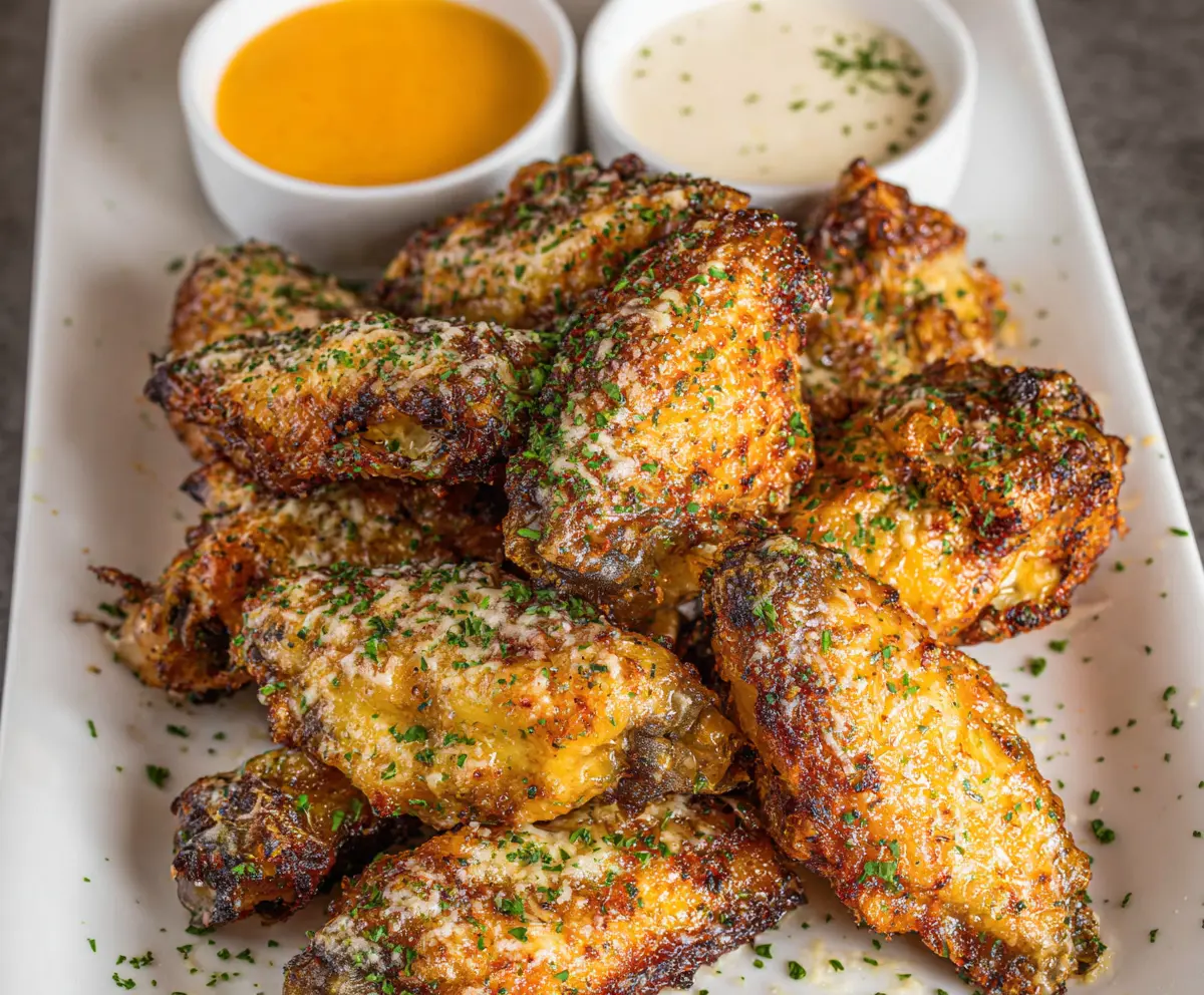 Serve the wings hot, garnished with extra Parmesan cheese and parsley on top. Don’t forget to add some ranch dressing and buffalo sauce on the side for dipping—it’s perfect for those who want a little extra kick!