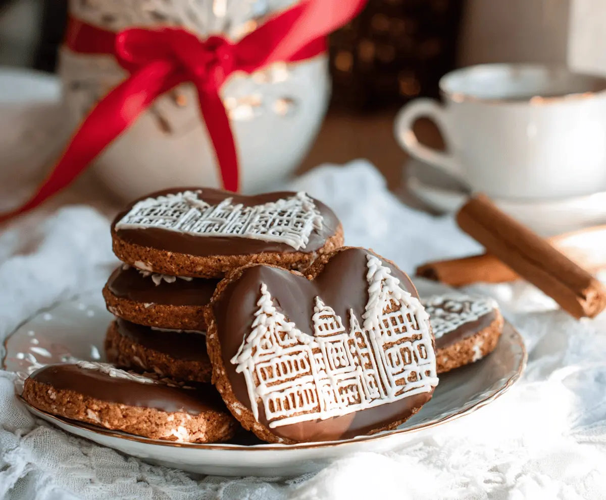 Using the royal icing, decorate your chocolate-coated cookies with beautiful designs. You can mimic the intricate patterns seen in traditional German decorations or let your creativity flow! 🎨