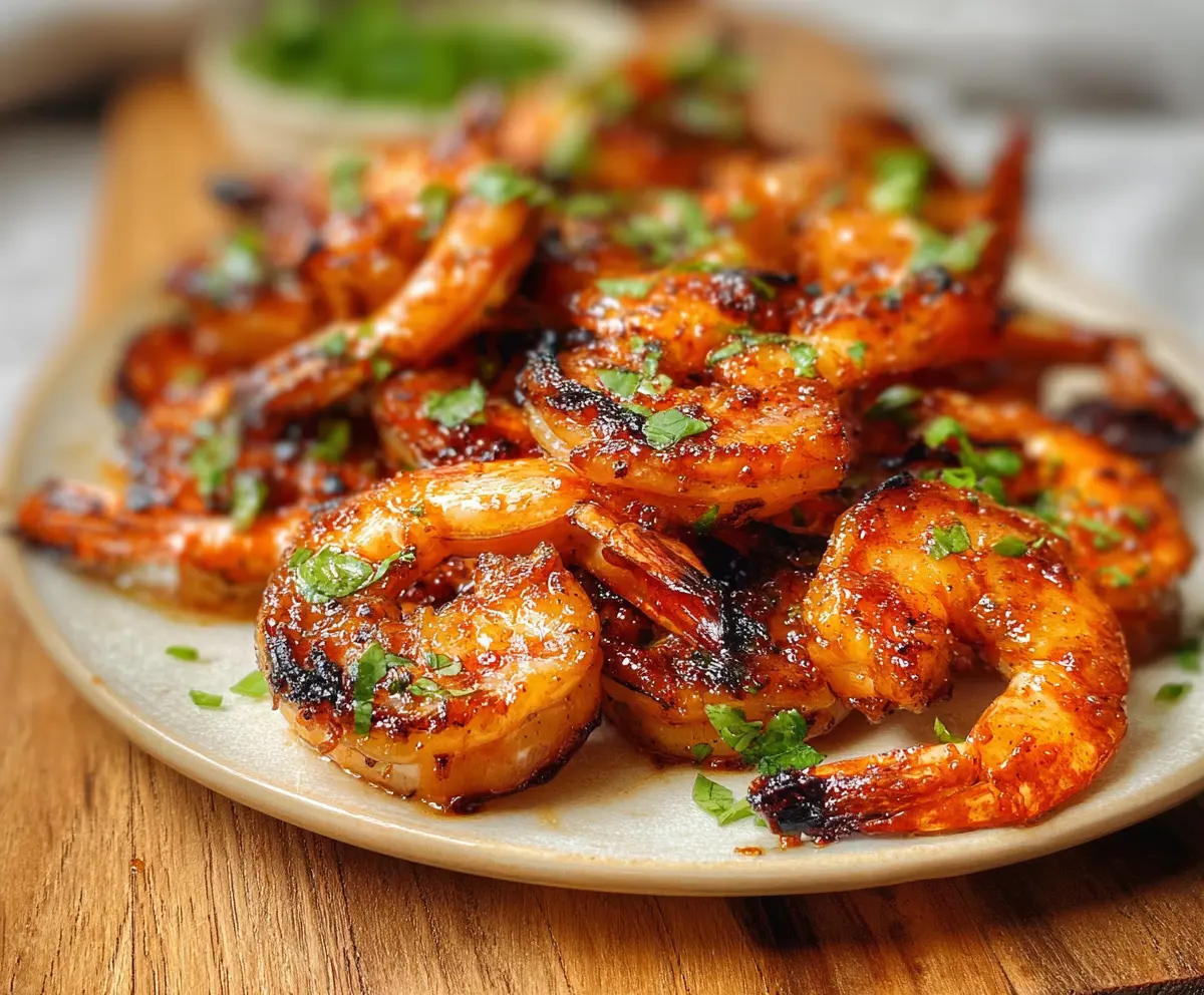 Serve the grilled spicy shrimp with lemon wedges and the dipping sauce on the side. Enjoy every spicy and flavorful bite!