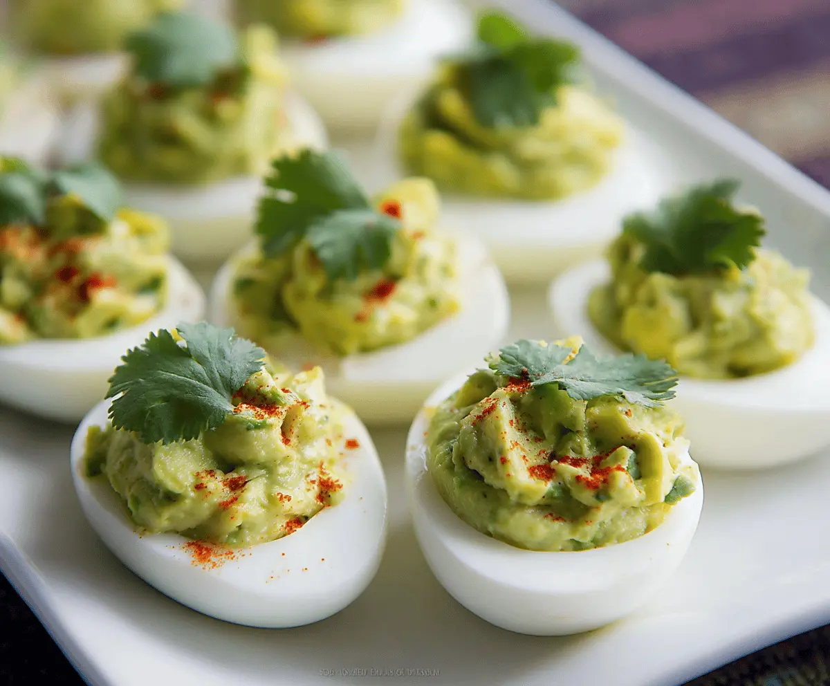Guacamole Deviled Eggs are a fun twist on a classic snack. Combining creamy eggs with zesty guacamole, they’re both tasty and colorful!