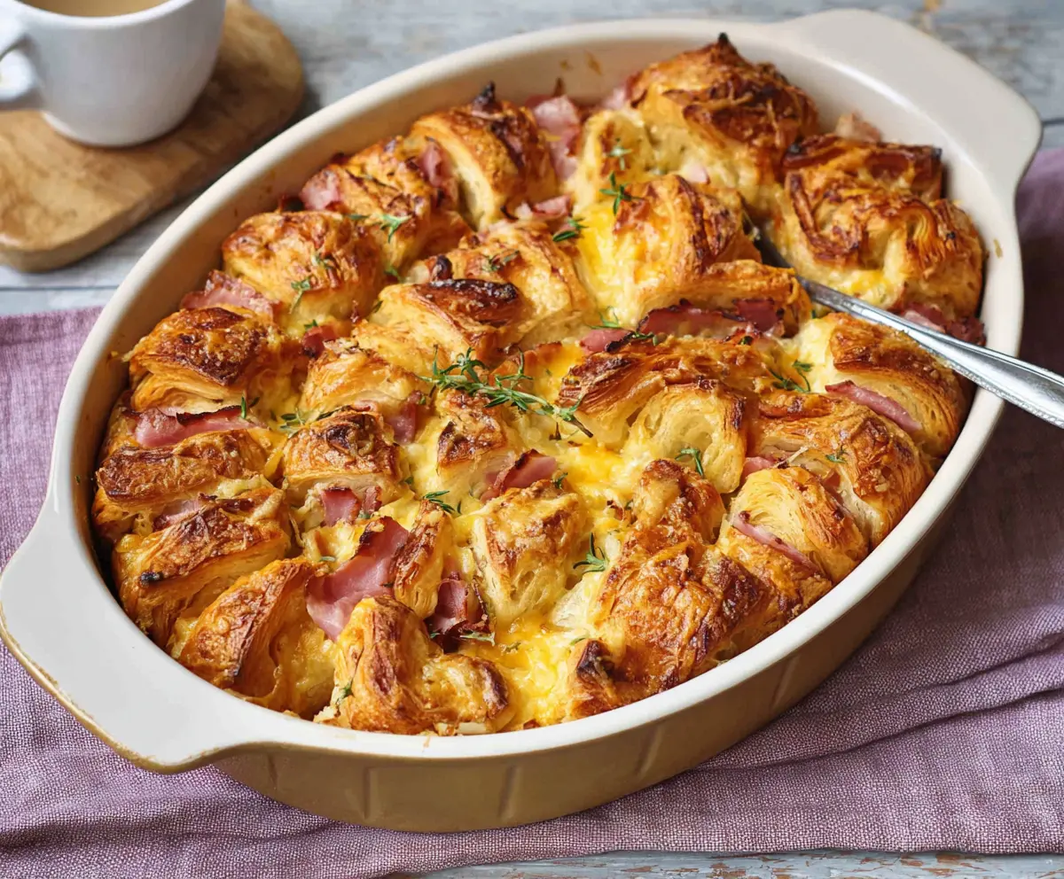 This dish is a fantastic blend of flaky croissants, melted cheese, and savory ham, bringing happiness to any brunch gathering. Enjoy!