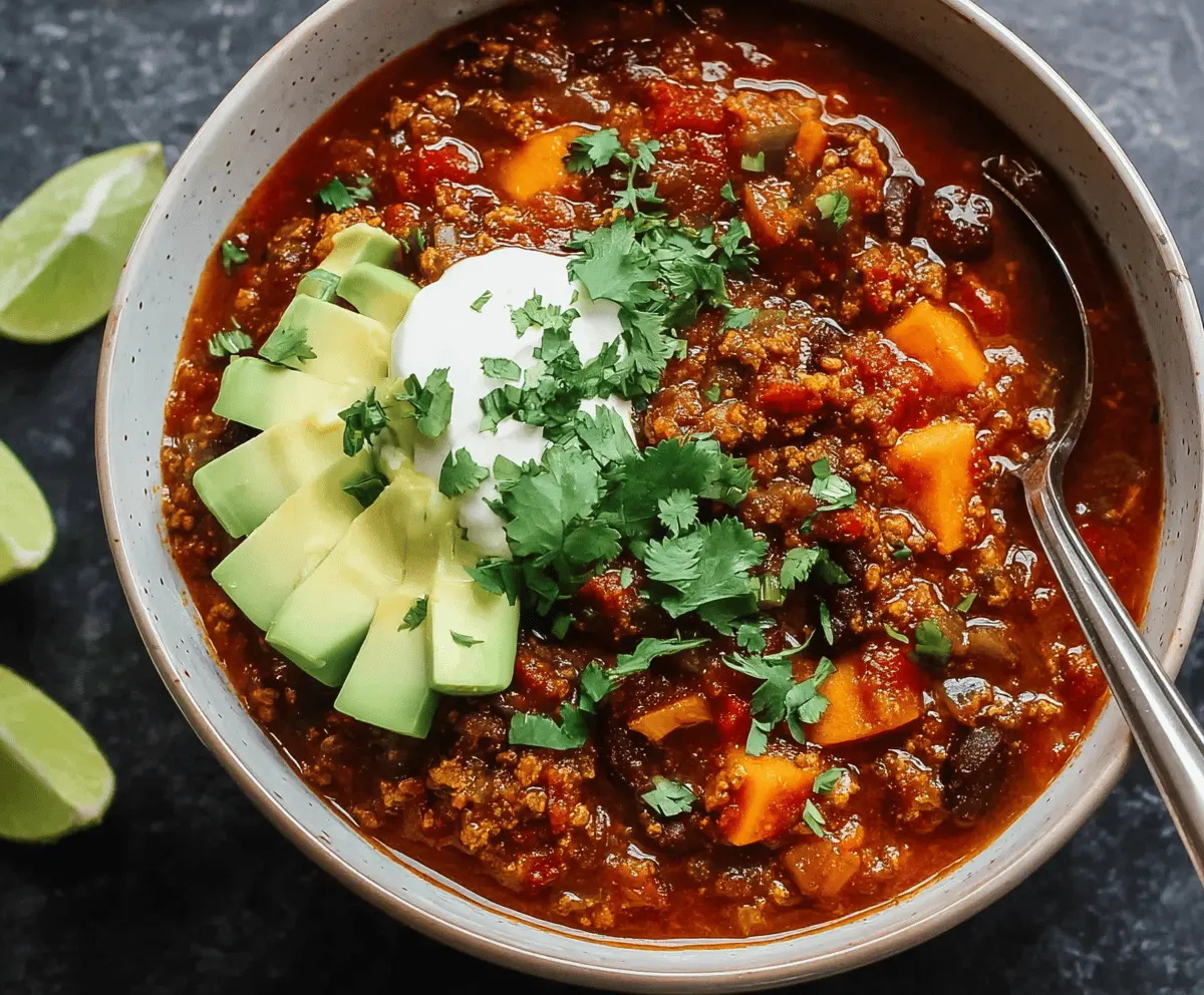 This healthy chili packs a punch with nutritious beans, lean meat, and lots of colorful veggies. It’s a warm, hearty dish that’s perfect for cozy nights—or any day really!