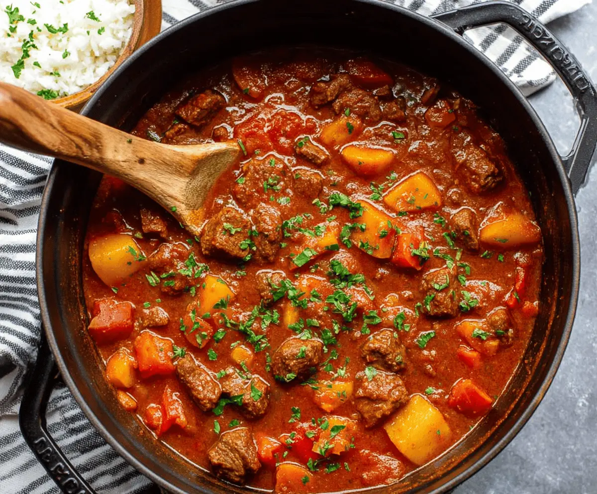 Hungarian Goulash is a hearty stew that’s packed with flavor! It’s made with tender beef, sweet paprika, and fresh vegetables like carrots and potatoes. Perfect for a cozy meal!