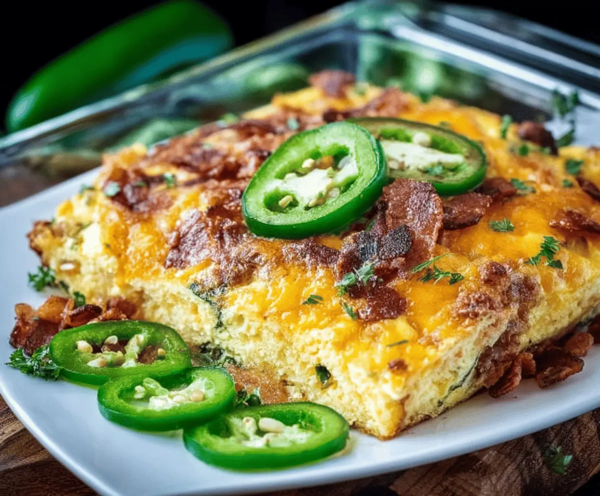 This casserole combines creamy cheese, crispy bacon, and spicy jalapeños for a hearty and flavorful breakfast that’s perfect for feeding a group or enjoying leftovers!