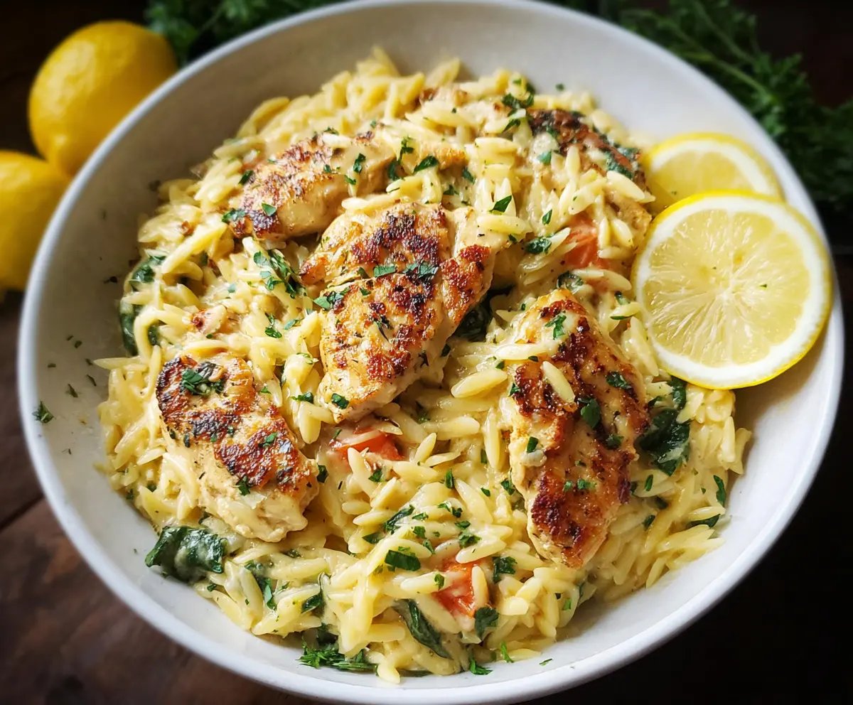 This Lemon Chicken and Orzo dish is fresh and zesty, perfect for a light meal! Tender chicken pieces simmer with vibrant lemon, herbs, and plump orzo pasta for a delightful bite.