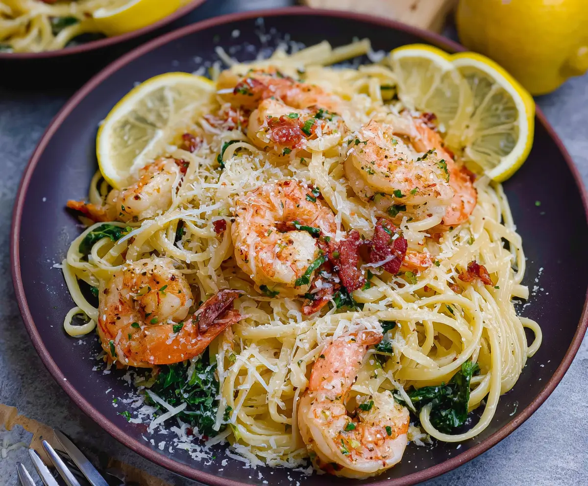 This Lemon Garlic Parmesan Shrimp Pasta is a quick and tasty dish that’s perfect for any night! The juicy shrimp are paired with a zesty lemon sauce and creamy Parmesan cheese.