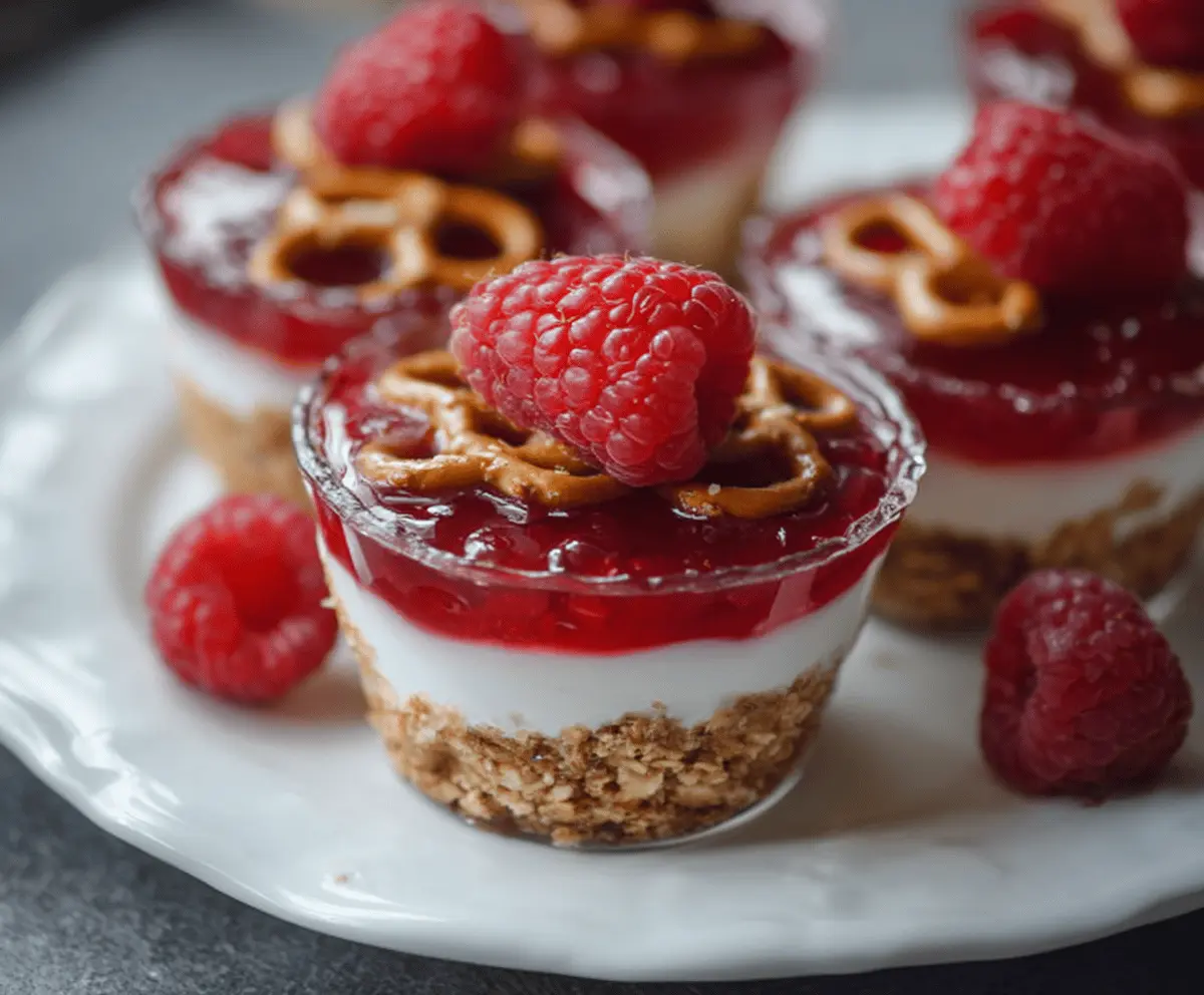 These No-Bake Raspberry Pretzel Cups are a tasty and fun treat! With a salty pretzel base and a sweet raspberry filling, they are perfect for any occasion.
