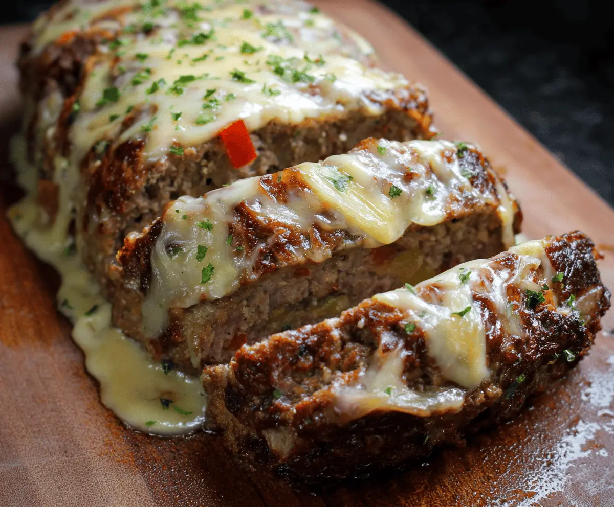 This Philly Cheesesteak Meatloaf is a fun twist on a classic dish! It’s packed with tender beef, bell peppers, onions, and gooey cheese, all wrapped up in a hearty loaf.