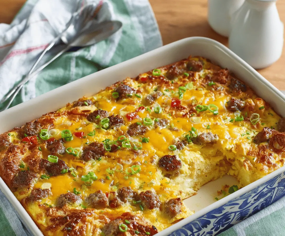 For an extra touch, garnish with additional chopped green onions if desired. Slice into squares and enjoy your hearty breakfast casserole!