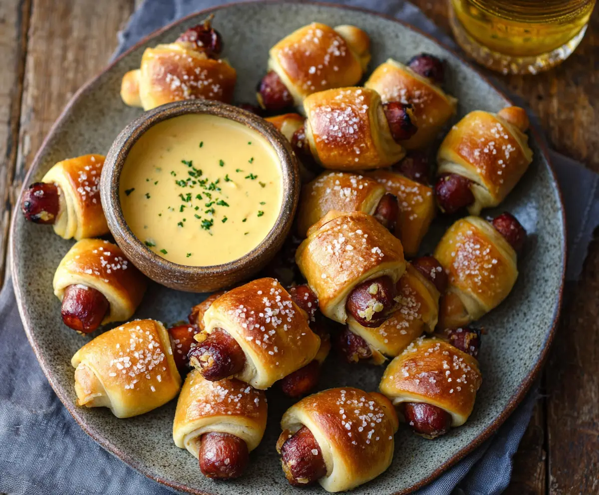 This recipe brings scrumptious and soft pretzel dough wrapped around savory mini hot dogs, paired with a rich, creamy beer cheese dip. Perfect for parties, game nights, or any fun gathering!