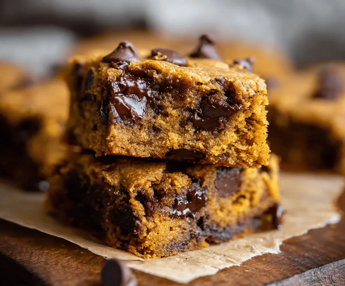 This recipe yields moist, flavorful pumpkin bars generously studded with melty chocolate chips—truly perfect for fall or any time you’re craving a cozy treat!