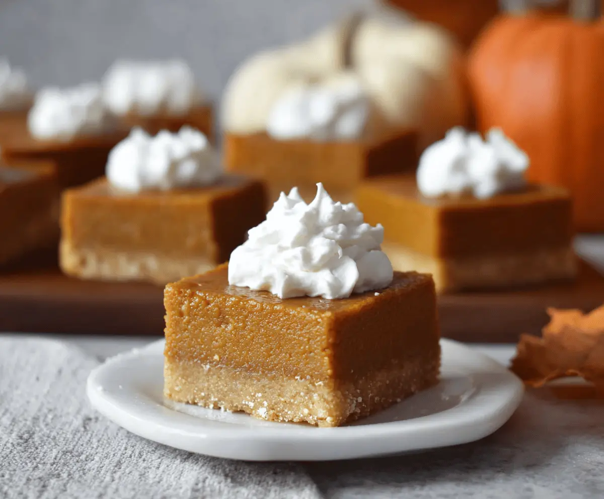 These creamy pumpkin pie bars are a delightful treat for fall and holiday gatherings. Enjoy your baking adventure!