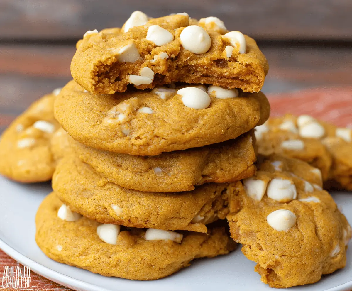 These Pumpkin White Chocolate Chip Cookies are soft, warm, and full of cozy autumn flavors. The sweet white chocolate adds a yummy twist to the classic pumpkin treat!