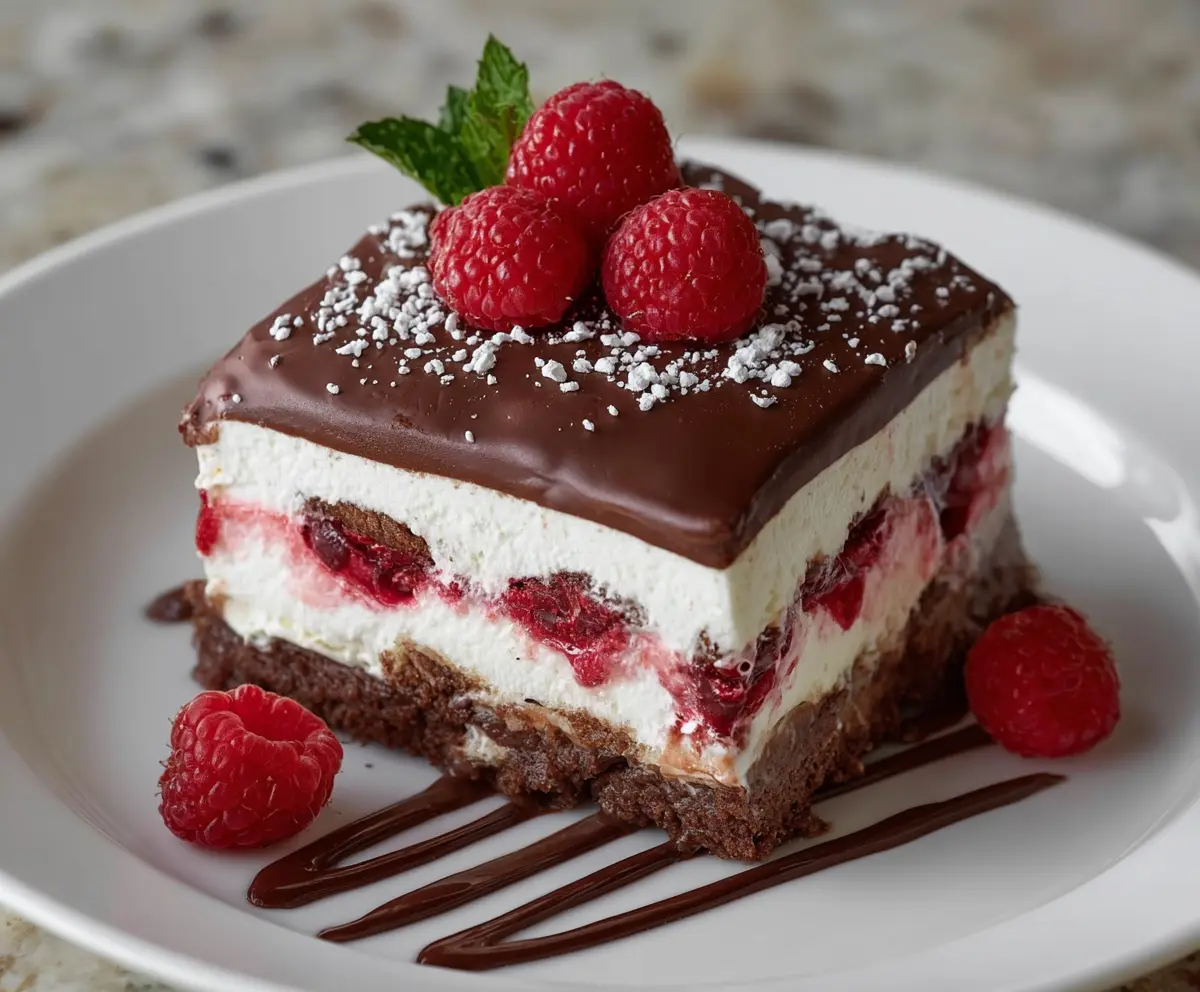 Enjoy your luscious Raspberry Chocolate Lasagna—a perfect combination of rich chocolate, tangy raspberries, and creamy layers!