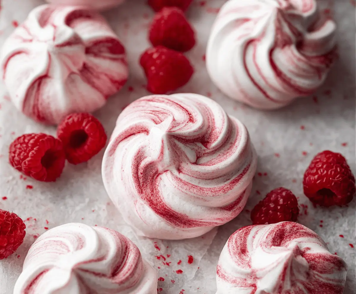 Delicious Raspberry Meringue Cookies with crisp outer shell and soft interior, perfect for a sweet treat.