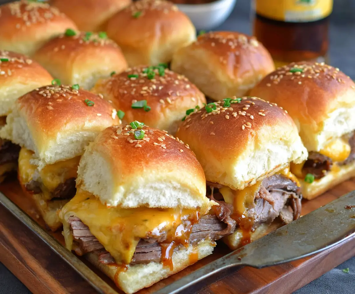 Keeping your sliders moist is key! Pouring beef broth or au jus over the meat before adding cheese makes all the difference. It hydrates the bread and adds flavor.
