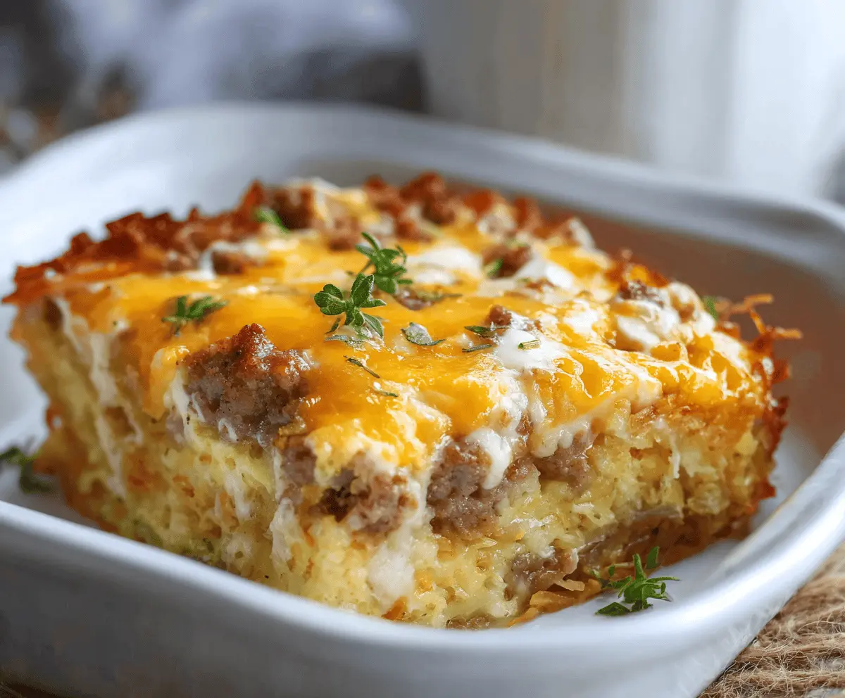 How to Make Sausage Egg Cream Cheese Hashbrown Breakfast Casserole