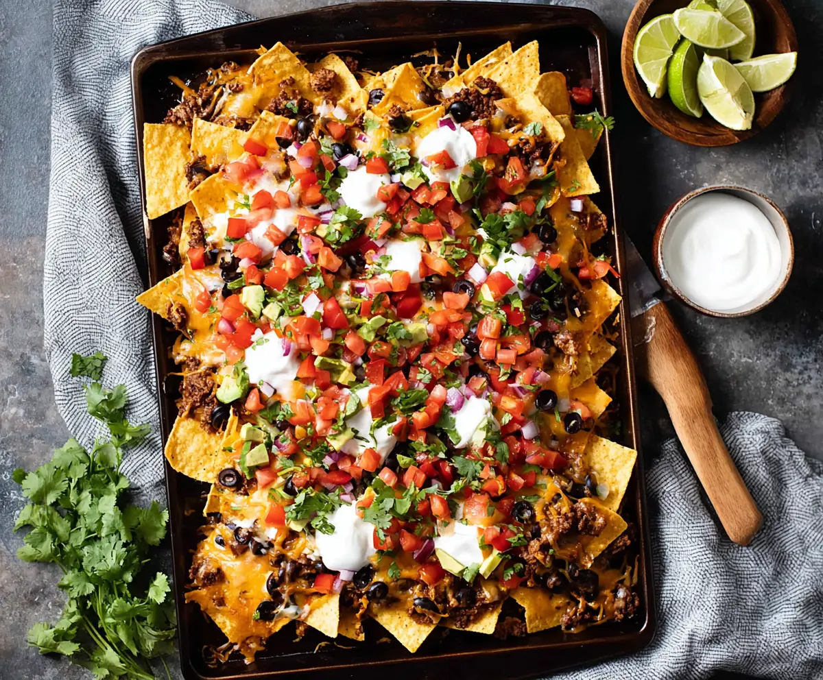 Serve your colorful and flavorful sheet pan nachos immediately with lime wedges on the side for some zesty goodness. Enjoy your snack party!