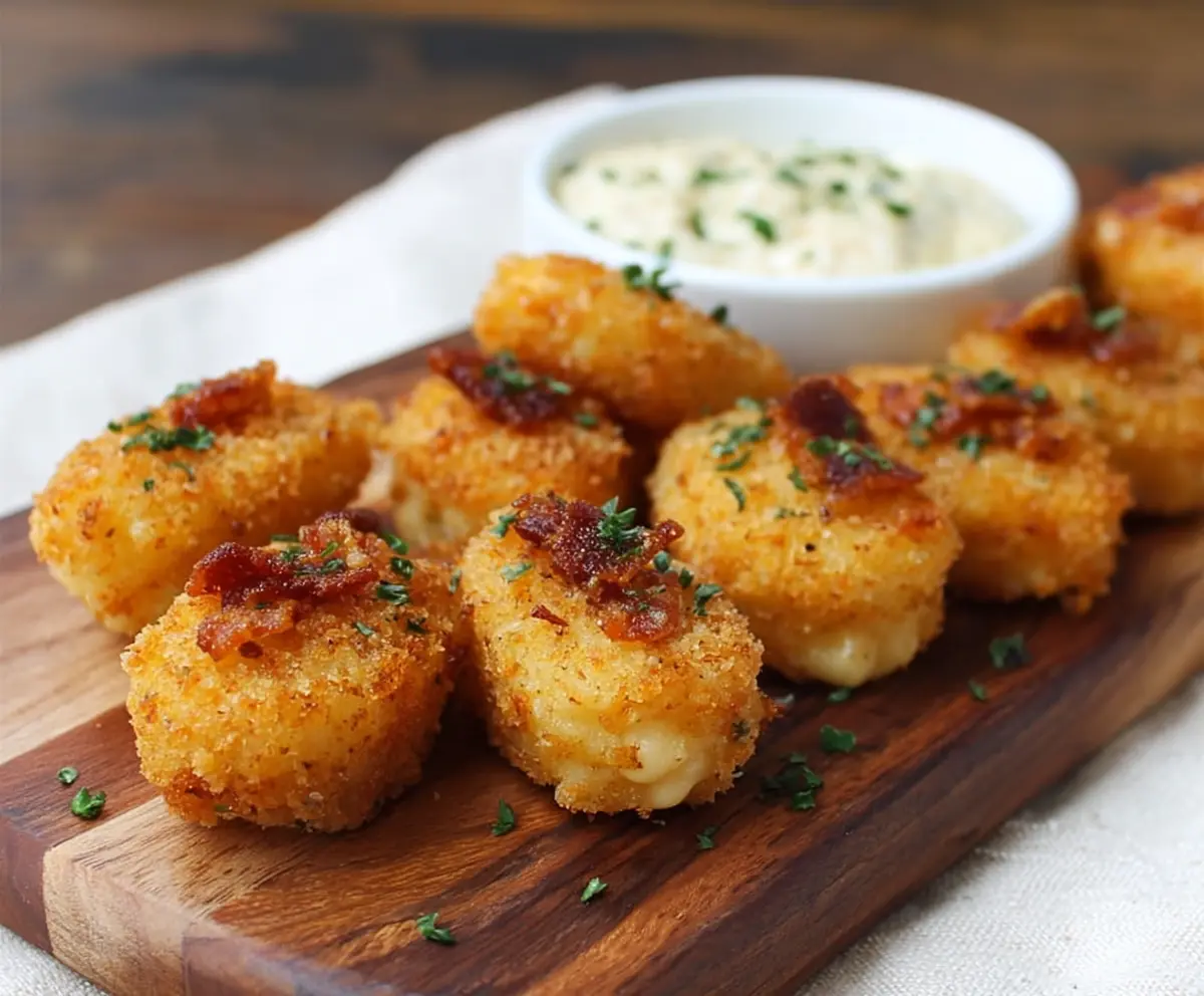 In a deep fryer or a large pot, heat the vegetable oil to 350°F (175°C). Fry the mac and cheese bites in batches until they turn golden brown and crispy, typically around 2-3 minutes per batch. Make sure not to overcrowd the pot to ensure even cooking.