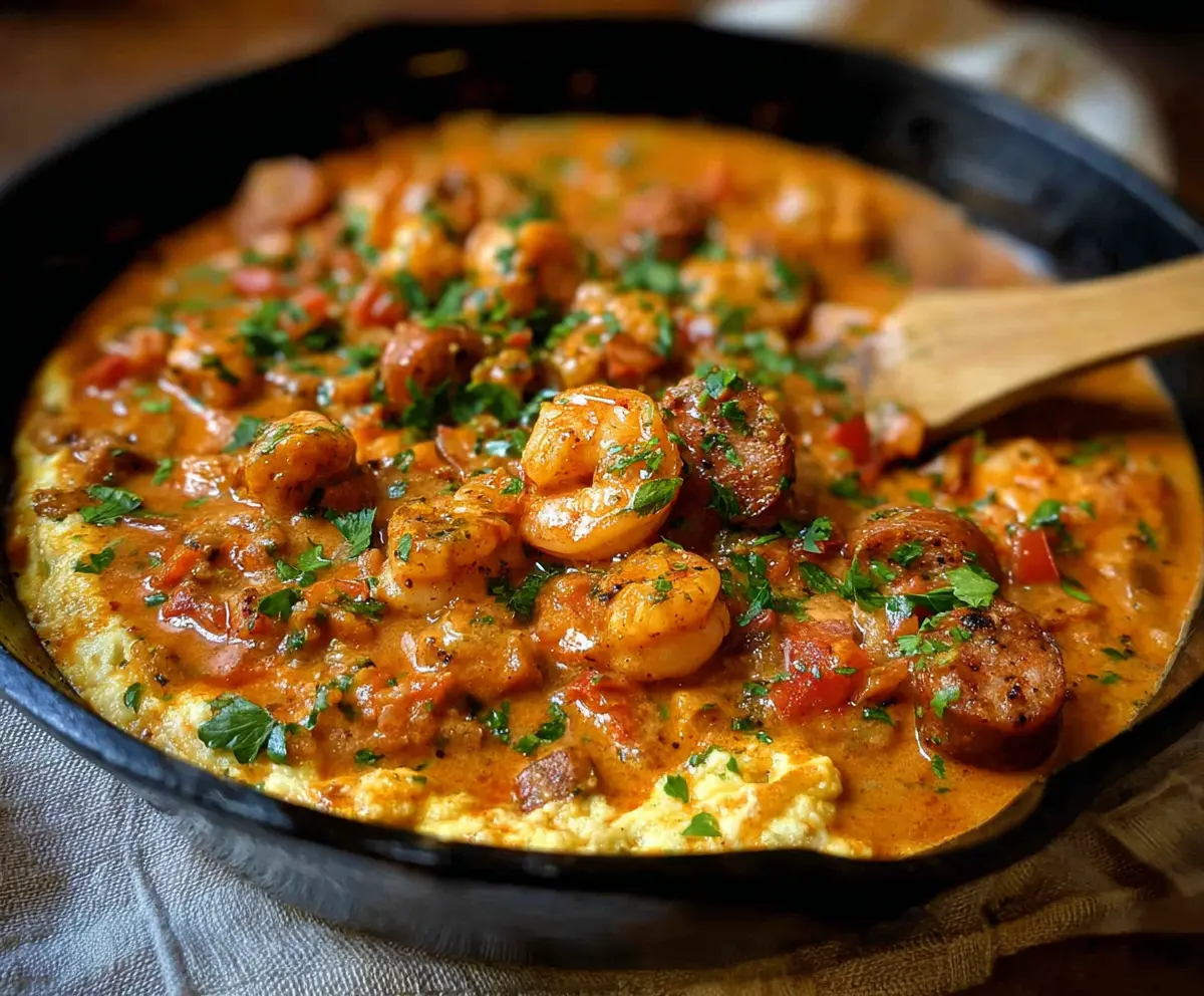 Enjoy this rich, flavorful, and comforting dish that combines spicy sausage, tender shrimp, and a creamy, savory sauce!