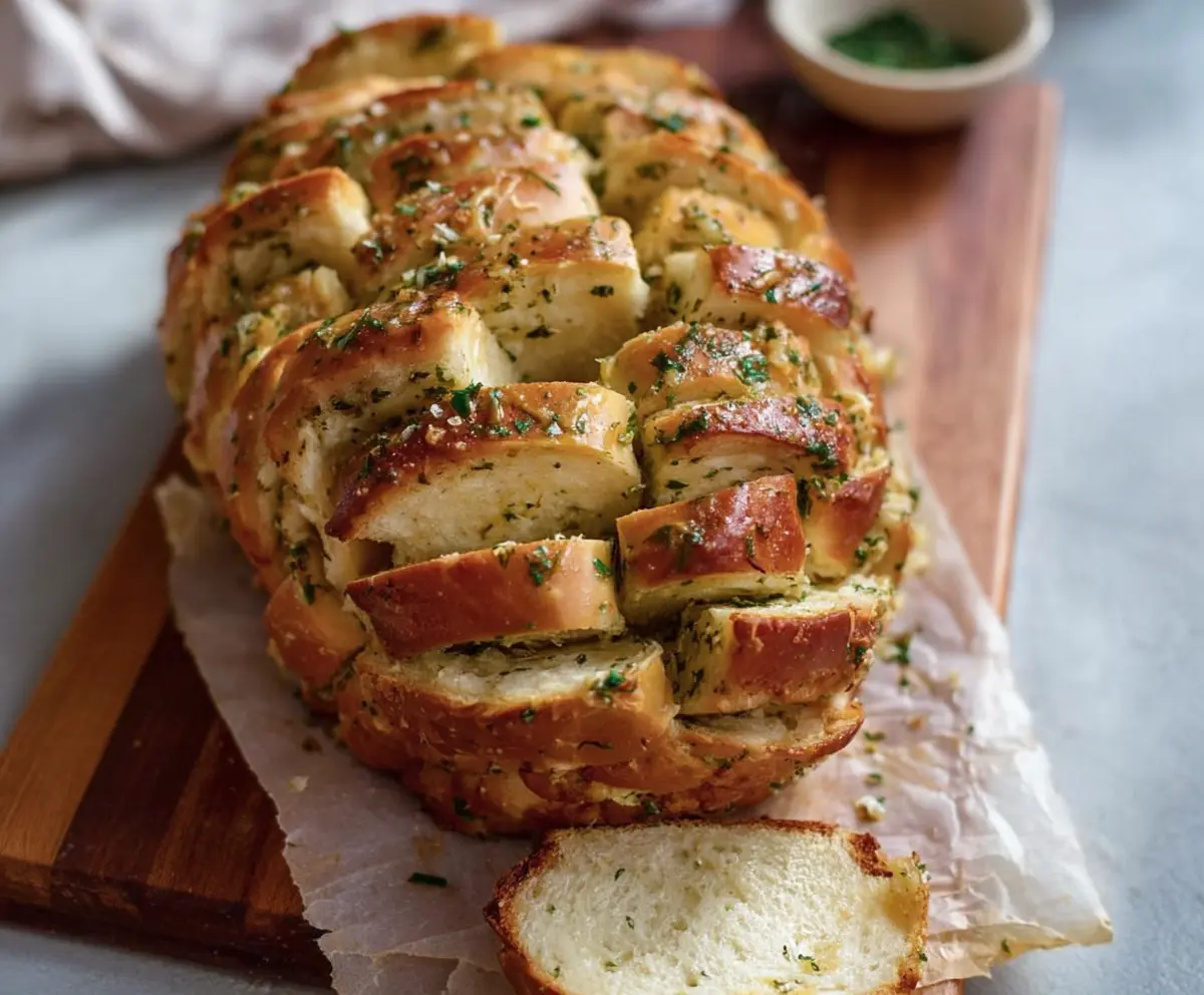Once baked, let the bread cool in the pan for about 10 minutes. Then, carefully remove it and serve warm. Pull apart the soft, garlicky layers and enjoy the irresistible flavor!