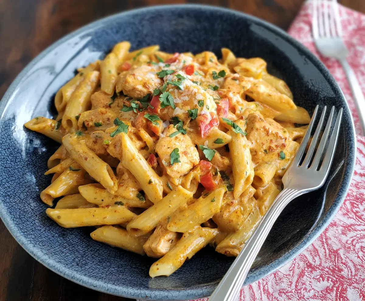 Return the cooked chicken to the skillet. Add the drained penne pasta and gently toss everything together until the pasta is evenly coated with that luscious sauce.